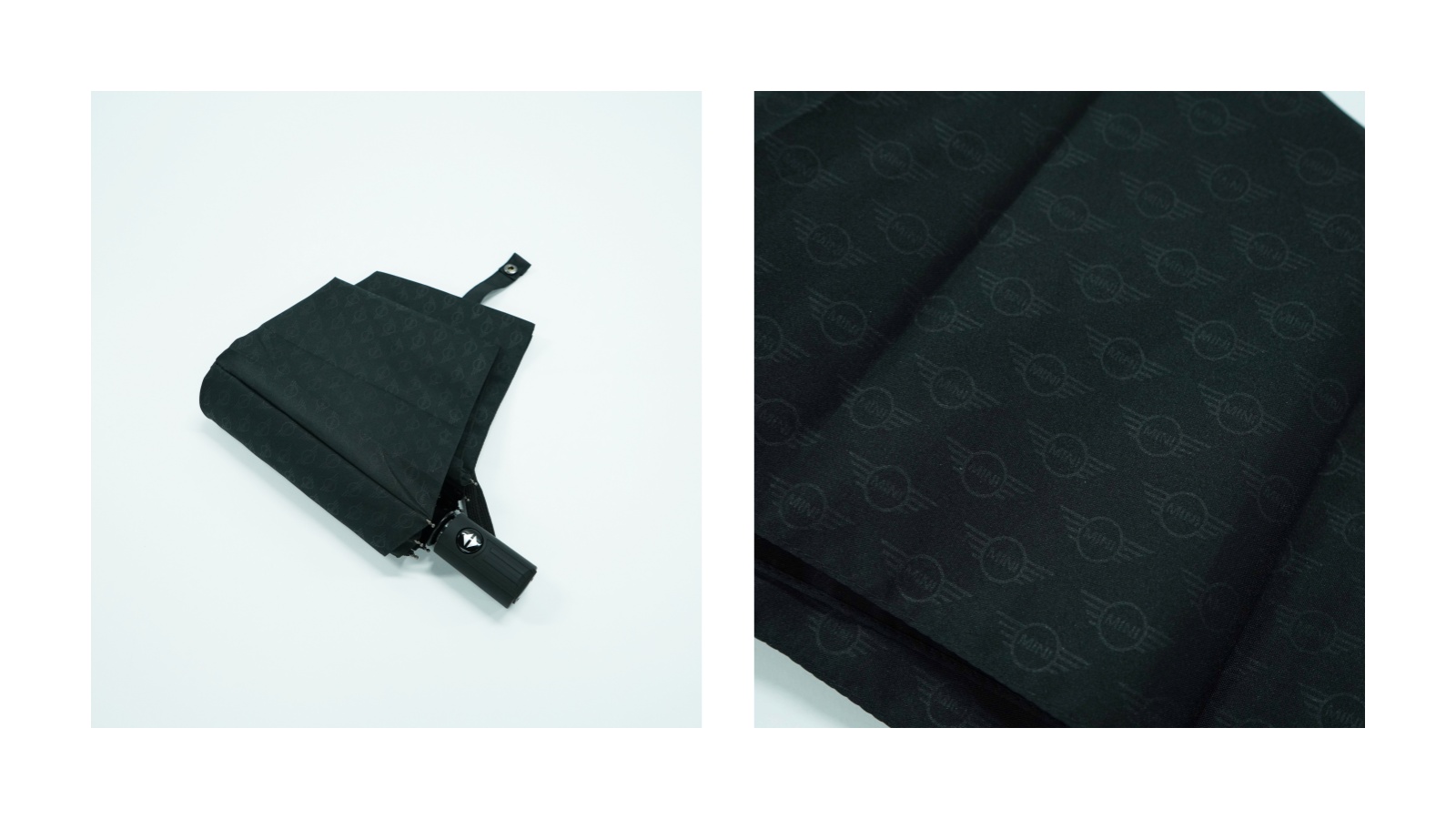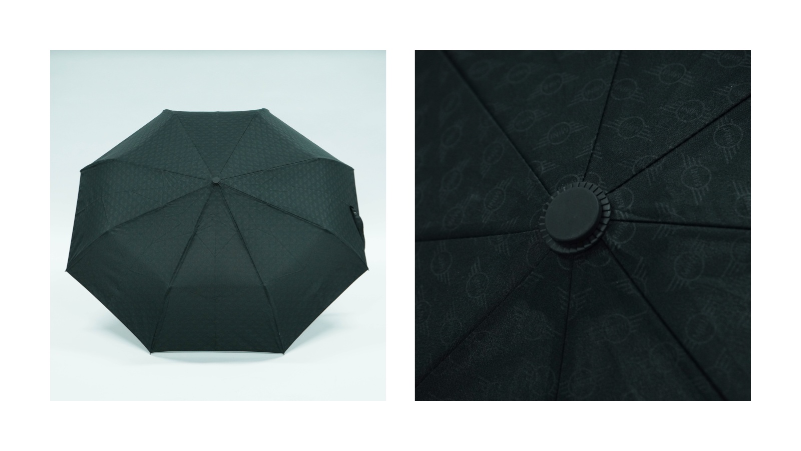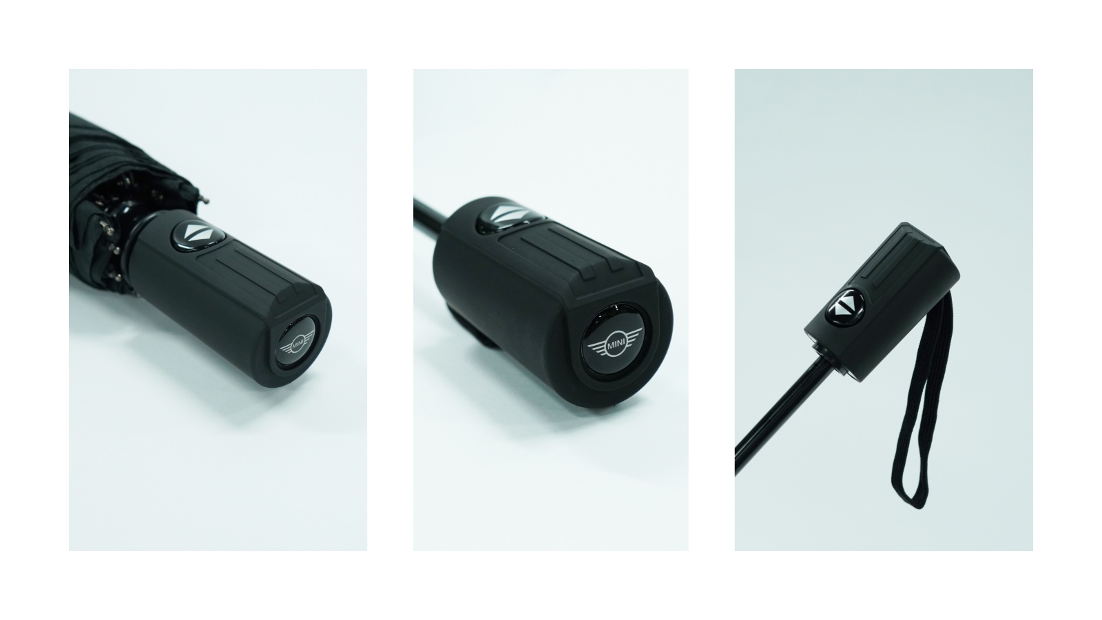 The BMW Mini umbrella's success begins with its sophisticated branding approach through advanced epoxy coating: