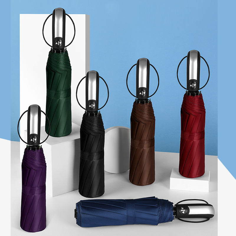 Fashionable umbrella supplier travel umbrella black pongee waterproof auto Paraguas 8 10 12 ribs 3 Folding UV Automatic umbrella