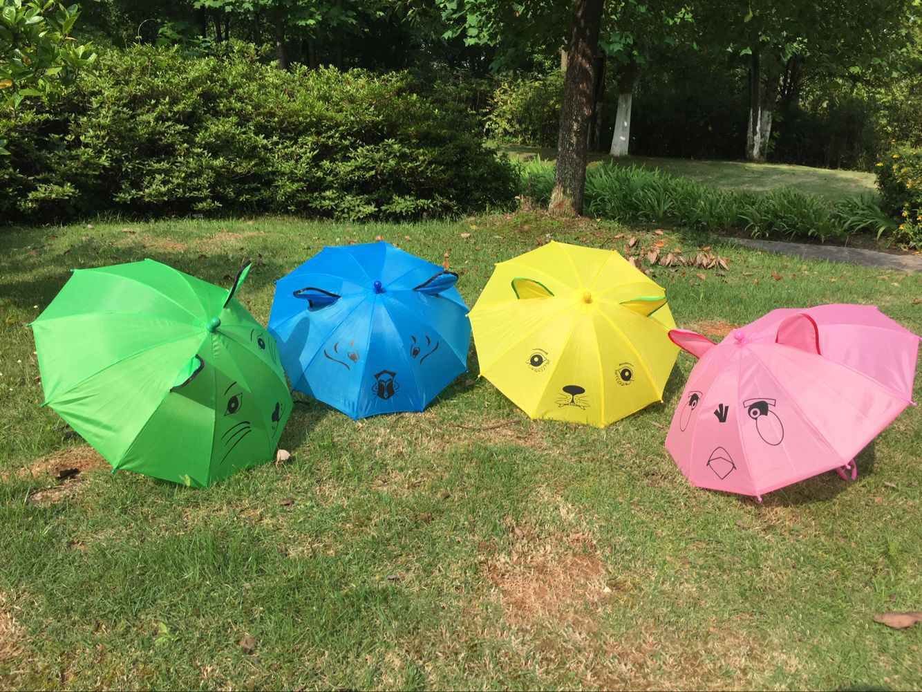 An Introduction to the Creative Kids Cartoon Animal Umbrella Our Creative Kids Cartoon Animal Umbrella is a delightful and practical accessory designed especially for children. With a size of 17 inches and 8 panels with ears, it is not only adorable but also perfectly sized for little hands to hold. The metal frame offers durability and strength, ensuring that the umbrella can withstand the rough and tumble of a child's daily activities. The polyester fabric is of high quality, providing excellent water resistance to keep kids dry even in the heaviest downpours. The plastic handle is comfortable to grip and easy for children to hold. The straight umbrella design is simple yet stylish, and the open diameter of less than 90cm is just right for providing coverage without being too cumbersome. The umbrella features charming cartoon animal patterns that are sure to capture the imagination of kids. Whether it's a friendly bear, a cute bunny, or a playful kitten, these designs add an element of fun to rainy days. As a manual umbrella, it is easy to operate for children. Samples are available so that you can see and feel the quality for yourself before making a purchase. This umbrella is suitable for all age groups of children and is a must-have item for keeping them dry and happy on rainy days. Let your child step out in style with our Creative Kids Cartoon Animal Umbrella.