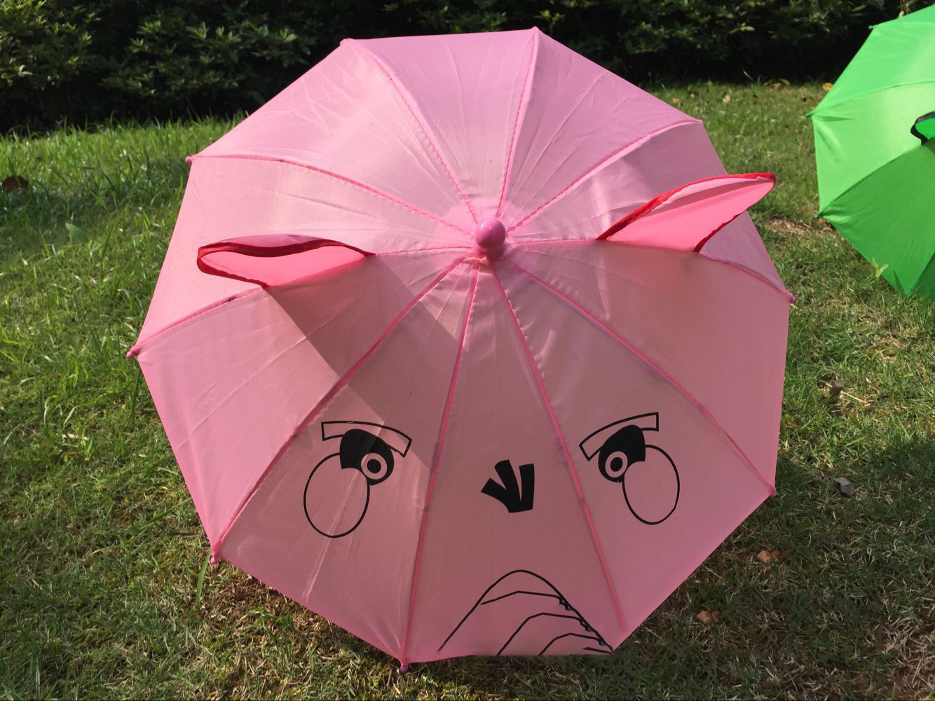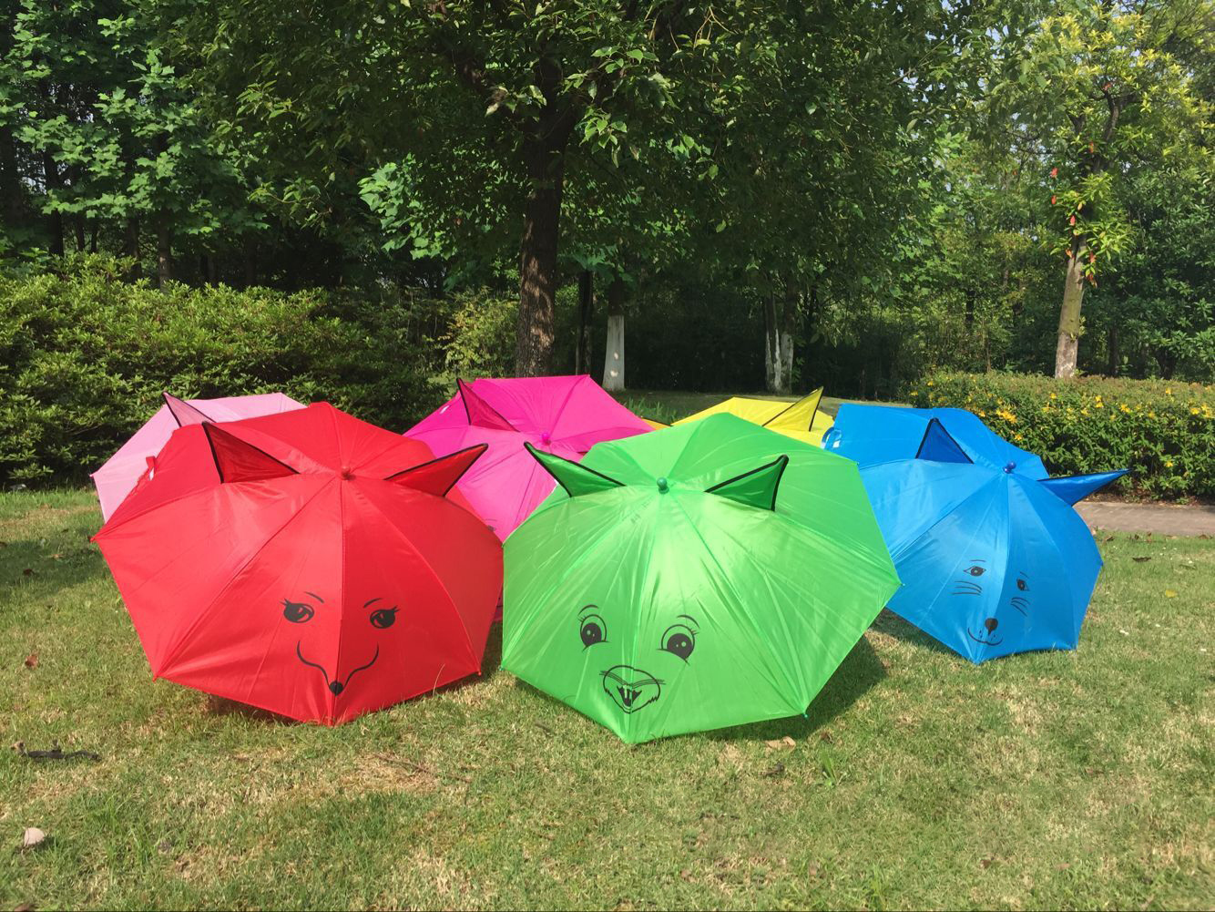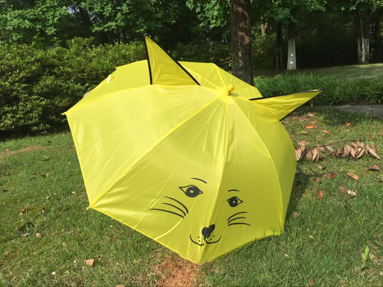 Size: 17”8K with ear Frame: Metal Fabric: Polyester Fabric Handle: Plastic hook handle Open Diameter :<90cm Age Group :Children Panel Material :Pongee Material :Iron Tube Logo :Cutsomized Logo Handle: Curved Occasion:Sunny day & Rain