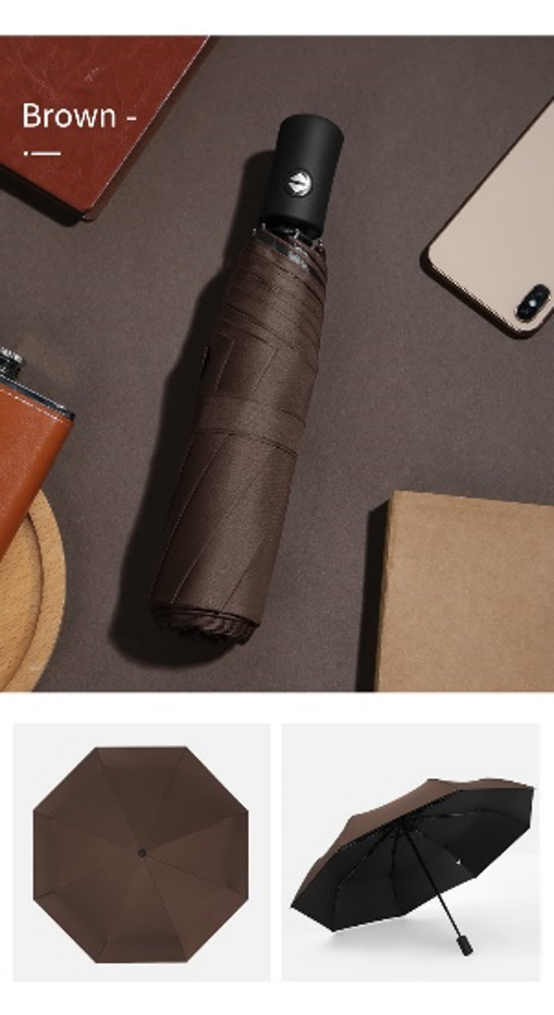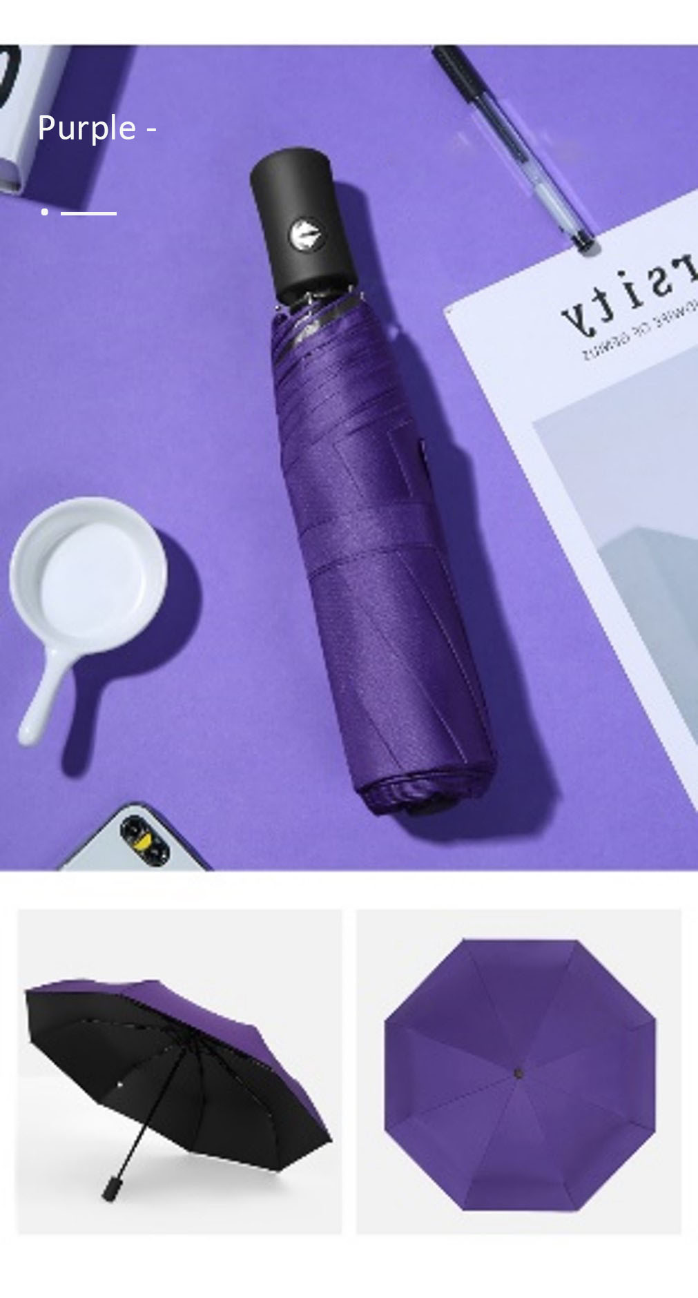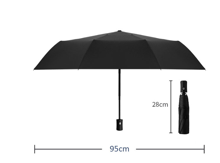 The three-folding automatic folding umbrella is a remarkable and highly convenient product. Design and Function: This umbrella features a three-folding pattern, which makes it extremely portable and easy to store. With an open diameter of 95cm, it provides extensive coverage, keeping you well-protected from rain or harsh sunlight. The pongee fabric is not only soft to the touch but also highly durable and water-resistant, ensuring that you stay dry in wet weather conditions. Handle and Construction: The plastic handle is ergonomically designed for a comfortable grip. It is lightweight yet sturdy, making it easy to hold and maneuver. The iron shaft and ribs give the umbrella excellent stability and strength. They are designed to withstand strong winds without bending or breaking, providing reliable protection in all kinds of weather. The plastic tips at the ends of the ribs add an extra layer of safety and prevent any accidental damage. Automatic Opening Feature: One of the standout features of this umbrella is its fully-automatic opening mechanism. With just the push of a button, the umbrella springs open instantly, saving you time and effort. This is especially useful when you need to quickly open the umbrella in a hurry, such as when caught in a sudden rain shower. Versatility and Style: This three-folding automatic umbrella is suitable for a wide range of occasions, from daily commutes to outdoor activities. It comes in a variety of colors and designs, allowing you to choose one that matches your personal style. Whether you prefer a classic look or a more trendy design, there is an option for everyone. In conclusion, the three-folding automatic folding umbrella is a must-have accessory for anyone who values convenience, durability, and style. With its superior design, high-quality materials, and automatic opening feature, it offers reliable protection and ease of use. Whether you're heading to work, running errands, or going on an outdoor adventure, this umbrella is sure to keep you dry and comfortable.