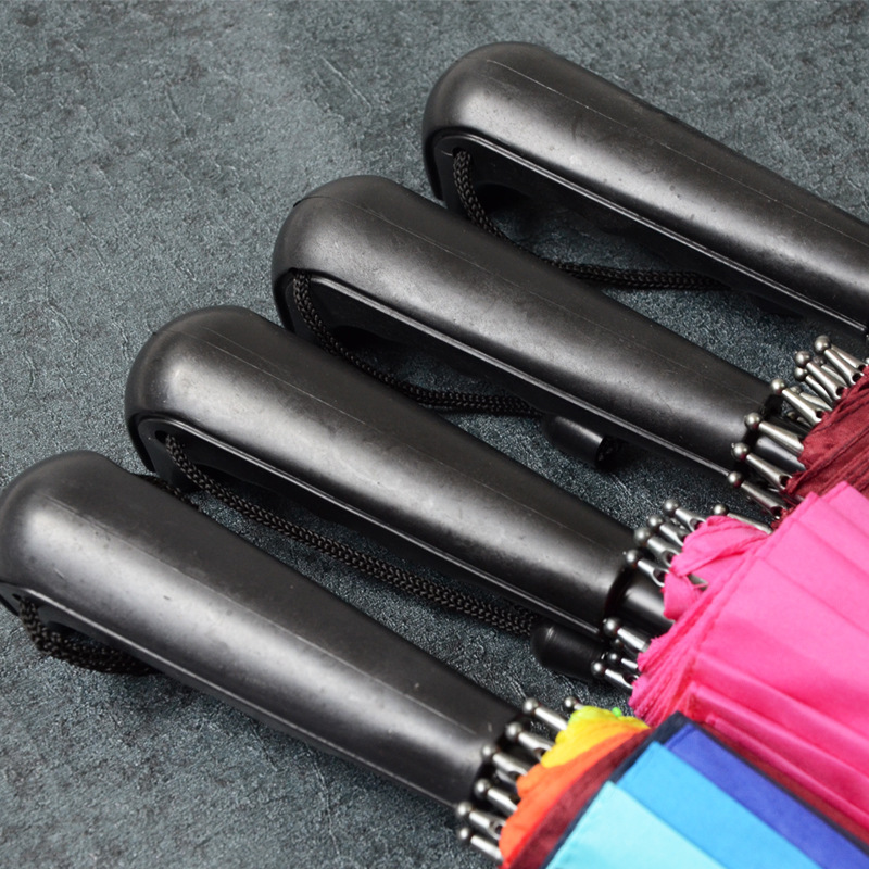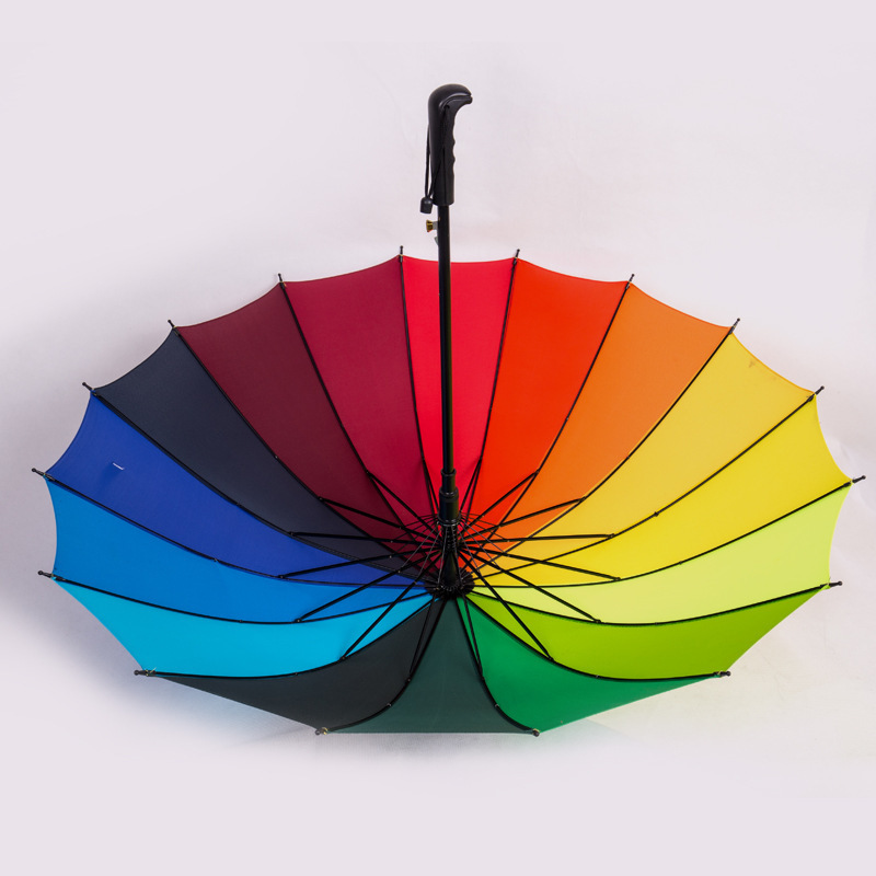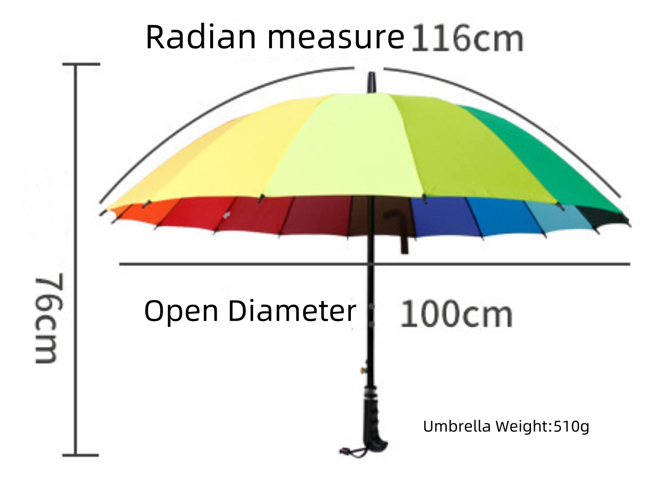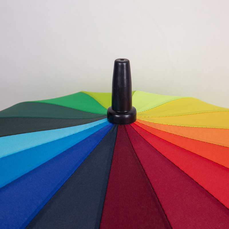 16k Rainbow Colors Black Steel Frame Long Handle Straight Anti-UV Windproof Rain Stick Auto Open Large Umbrella