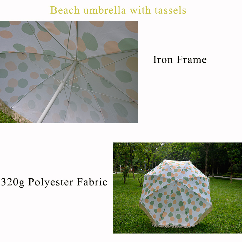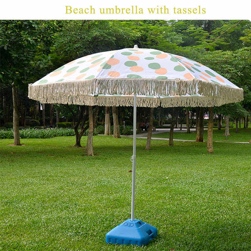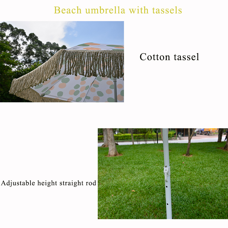 The beach umbrella, with its cotton tassel design, adjustable height straight rod, iron frame support poles, and high-quality polyester fabric, is a practical and stylish choice for all your outdoor activities. It offers both functionality and aesthetic appeal, making it a great addition to your outdoor gear.