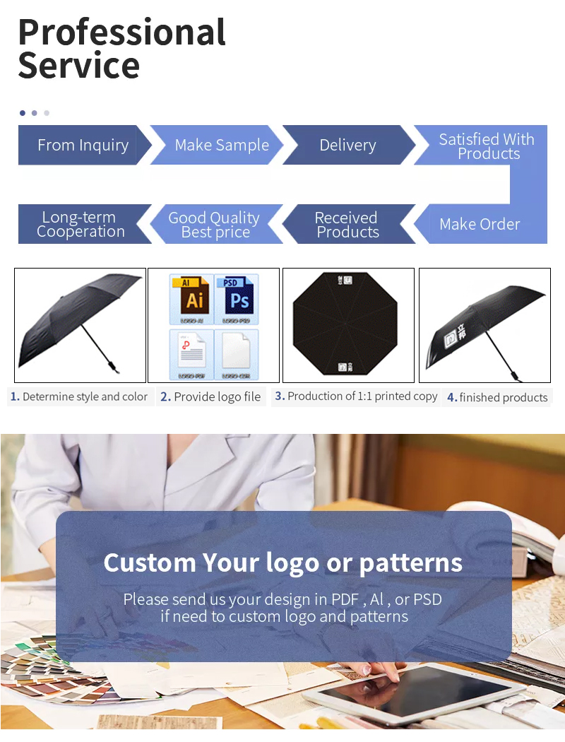 We create functional and stylish umbrellas tailored for various markets, ensuring they meet your brand’s quality and style standards.